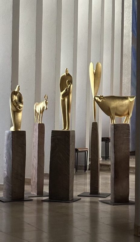 SAKRALE KUNST CHRISTUSZEICHEN Material: Apfelholz geschwärzt SITZENDER ENGEL Material: Lindenholz vergoldet CHRISTUS Material: Apfelholz und Textil NAGELKREUZ Material: Bronze GETHSEMANE Material: Blei über Holzkern MEMENTO MORI Material: Blei und Ziegelstein GOLGOTHA Material: Quarzit GOLGOTHA Material: Granit GOLGOTHA Material: Marmor GEKREUZIGTER Material: Bronze und Eisen GRABTUCH Material: Gips CHRISTUS TRIUMPHATOR Material: Bronze SERAPH Material: Lindenholz vergoldet CHERUB Material: Lindenholz vergoldet SERAPH Material: Lindenholz vergoldet AKROBATEN Material: Rosemetall vergoldet SÄULENHEILIGE Material: Rosemetall vergoldet HIMMLISCHE AKROBATIK Material: Rosemetall vergoldet KRIPPE, MÜHLHEIM AM MAIN Material: Lindenholz vergoldet EPITAPH Material: Bronze ENGEL Material: Apfelholz gekalkt MARIA MIT KIND Nadelholz karbonisiert und vergoldet HEILIGE ELISABETH Material: Bronze MARIA MIT KIND Material: Bronze HEILIGE DOROTHEA VON CÄSAREA Material: Bronze